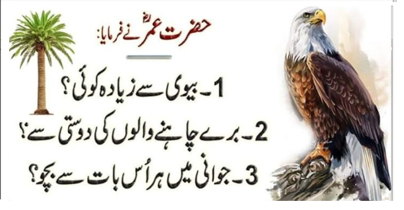 اگر سادہ اور پرانے کپڑے پہننے سے عزت میں کمی آتی تو سترہ پیوند لگی قمیص والے حضرت عمر فاروق ؓ بائیس لاکھ مربع میل کے حکمران نہ ہوتے ۔ حضرت عمر فاروق ؓ نے اپنے بیٹے سے ارشاد فرمایا: کالے بالوں میں سفید بالوں کا آجانا،تجھے اللہ پاک کی نافرمانی سے منع کرتا ہے ۔ آپ ؓ نے فرمایا تین چیزیں محبت بڑھانے کا ذریعہ ہیں: سلام کرنا ،دوسروں کے لئے مجلس میں خالی جگہ کرنا،مخاطب کو بہترین نام سے پکارنا۔جھوٹی قسم کو ہلکا نہ سمجھو ورنہ اللہ تعالیٰ تمہیں ہلاکردے گا۔ مجھے اس دن سے خوف آتا ہے جب کفار اپنے باطل ہونے میں فخر محسوس کرنے لگیں